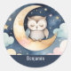 Cute Sleeping Owl on Moon Personalised Name Classic Round Sticker