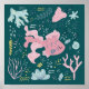 An illustration of a pink fish with underwater elements. The background can be customised to any colour to fit your theme!