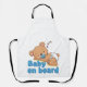 Ensure your precious cargo is safe with this charming "Baby on board" design. Featuring an adorable cartoon teddy bear fast asleep with a pacifier, this sweet illustration brings a touch of cuteness to any product. The soft colours and peaceful sleeping cub make it a perfect gift for new parents, baby showers, or for your own family car. Customise it to make it uniquely yours!