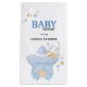 Cute and gentle baby shower design with stars and dots in blue, beige and cream.
