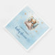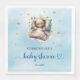 Unleash the charm of your boy baby shower party with the enchantingly designed napkins, graced with the illustration of an adorable baby bear. The bear, tenderly cradling blue and ivory balloons, descends from a sky blue canvas, evoking a sense of whimsical innocence. This charming 'Baby bear with balloons' napkin design perfectly captures the spirit of joyous celebrations, making it an unparalleled choice for creating an eternal memory of your special occasion.