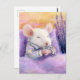 A cute white mouse in PJs sleeps in a bed with some lavender plants fantasy art