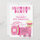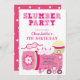 Pajama party essentials birthday party invitation in pink with a coordinating pink polka dot backfor an extra special touch.