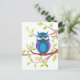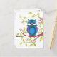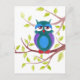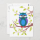 Cute sleepy owl on a tree cartoon postcard