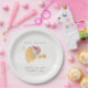 Cute Sleepy Pink Bear Over Moon Girl Baby Shower Paper Plate