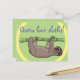 Cute sleepy sloth hanging on green bamboo cartoon postcard