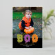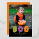 This cute Halloween photo card features one vertical photo and a cute but slimy greeting "BOO!" in orange, green, purple and gold foil on the front. On the back you will find an orange background (which can be changed if desired). Further customise this design by adding a photo and/or text to the back! The gold foil on this card really shines and adds that extra special touch to your Halloween cards. Foil is available in gold, silver, and rose gold. See the collection for more items!
