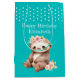 Cute sloth add name polka dots turquoise medium gift bag