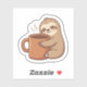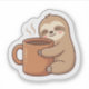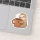 This adorable single vinyl sticker features a hand-drawn kawaii sloth hugging a coffee mug.