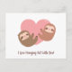 A postcard with a cute illustration of a pair of sloths hugging on to a pink heart with the caption "I Love Hanging Out With You!" A sweet Valentines day or love confession design.