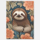 Cute Sloth Elegant Floral William Morris Inspired Magnet