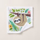 This cheerful kids' wash cloth features a cute sloth hanging upside down from a tree branch, surrounded by colourful jungle leaves and tropical flowers. The sloth has a friendly, cartoonish style.