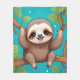 This delightful sloth illustration is the perfect way to bring a smile to someone's face and brighten up their day. The charming and whimsical design is sure to evoke feelings of joy and happiness in the viewer, with its playful pose, adorable features, and intricate details designed to create a truly captivating and endearing image.