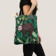 Cute sloth in green tropical illustration pattern tote bag