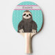 A cute sloth ping pong paddle for anyone who loves these cute animals. Personalise the name and customise the background colour.