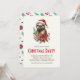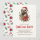 Capture the enchantment of the holiday season with this sloth Christmas invitation, a whimsical and heartwarming addition to your festive celebrations. This charming card features a sloth adorned with a Santa Hat and decorated with a red poinsettia garland, set against a snowy winter scene.