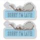 A funny sloth arriving late on contour stickers for your mail or gift. Use "Personalise this template" to tweak the "SORRY I'M LATE!" text and create a unique, customised item; text changes are reflected across both stickers. Featuring a cartoon of a cute, sleepy sloth with an envelope in it's outstretched claw. Better late than never!