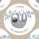 Cute and whimsical watercolor sloth typography design. Text says Thanks for hanging out, and can be changed to customise.