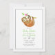 Celebrate the arrival of a little one with this charming sloth-themed baby shower invitation. Featuring a watercolor illustration of a sweet mother and baby sloth hanging from a tree branch, this design radiates warmth and whimsy. The clean layout, delicate green accents, and playful typography make it perfect for a gender-neutral baby shower. Fully customisable to include your event details, this invitation is an endearing way to bring loved ones together.