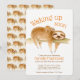 Cute whimsy sloth laying on a branch with a baby sloth clinging on its back baby shower invitation. Personalise the front of this cute baby showering invite with your own choice of name and baby shower event details. Print is taken from an original watercolour painting by Sarah Trett for www.mylittleeden.com