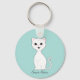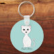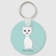 Cute Smart White Kitten Cartoon on Light Blue Key Ring