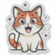 This charming illustration features a happy cartoon cat with big sparkling eyes, a warm smile, and soft rounded shapes. Clean linework and gentle colors give the design a friendly, playful personality, while small decorative sparkles add extra charm. The simple yet expressive style makes this artwork perfect for fans of cute animal illustrations, kawaii aesthetics, and lighthearted character art.