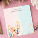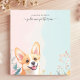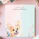 Show off your love for corgis with this adorable, personalised notepad! A cheerful illustration of a smiling corgi, surrounded by delicate flowers and foliage, peeks out from the bottom. The soft, pastel background adds a touch of sweetness. Customise this notepad with your own text to make it truly unique. Perfect for dog lovers, to-do lists, or quick notes.