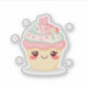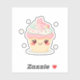 Cute cupcake with smiling face, pink and mint frosting, flowers, sprinkles, heart on top, stars and sparkles.
