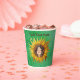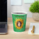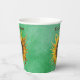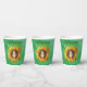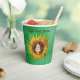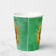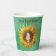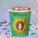 These paper cups are done in shades of green with a cute smiling girl with long brown hair in the middle of a big yellow sunflower. Customise your text with the template.