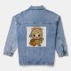 Cute Smiling Mummy Kid with Pumpkin Candy Basket Denim Jacket