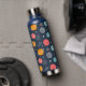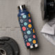 The bottle looks even better in real life. The ice cubes I put in lasts all day! I have my bottle with me all the time. It's summer and having something cold to drink feels amazing. With this bottle I always have something super cold. I have only tried the hot drink once and it lasted a long time as well. The color blue is a navy blue and the white printed on it is vibrant. It printed perfectly. I love my personalized smile water bottle.