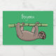 This cute, happy sloth is hanging on a green bamboo. All done in adorable cartoon illustration style.