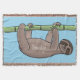 Cute smiling sloth on bamboo cartoon illustration throw blanket