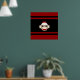 Cute Smiling Sock Monkey Face on Red Black Poster