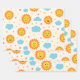 Cute Smiling Sunshine with Clouds and Stars Patter Wrapping Paper Sheet