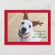Cute Smiling White Reindeer Dog Red Christmas Postcard