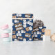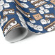 A fun S'mores themed gift wrap on a blue background. Filled with marshmallows and crackers. A fun camping themed pattern.