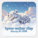 Cute Snow Leopard Asleep on Clouds Baby Shower Square Sticker