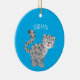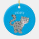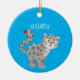 Cute snow leopard cartoon illustration ceramic tree decoration