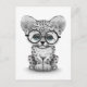 Cute Snow Leopard Cub Wearing Glasses on White Postcard
