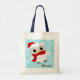The owl is in white and warm beige with a red scarf. The background has snowflakes in the light teal. The text is in dark chocolate brown and customisable. This is a digital illustration.
