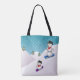Winterly graphic illustration featuring two cute snowmen snowboarding in a snowy environment.
