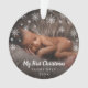 Did you have a baby this year? Add a memory to your tree with this cute keepsake ornament featuring a modern and simple design with snowflakes and the message, "My First Christmas" in chalk script along with your baby's name and the year, over your favourite newborn photo. Add the same photo to both sides or a different one on each side. A gender neutral design that is great for a boy or a girl. This ornament also makes a great gift for close friends and family.