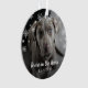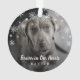 Cute Pet Memorial Christmas Ornament featuring a simple yet elegant design with snowflakes at the top and "Forever in Our Hearts" in chalk script along with your dog's name over your favourite photo. This modern pet memorial ornament is a great way to remember your pet cat or dog.