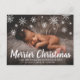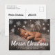 Announce the birth of your new baby boy or girl with this cute holiday birth announcement postcard featuring a simple design with the handwritten greeting "Merrier Christmas" and snowflakes drawn in chalk, along with your message and baby's birth stats, over your favourite horizontal newborn photo. The backside has your personal message and return address for easy mailing.