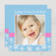 An trendy pink and blue snowflake winter onederland birthday party invitation. Makes a great invite for a winter wonderland 1st birthday party. Easily add your own photo and personalise with your information. To resize and position your photo, click on the "CUSTOMIZE IT" button.