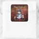 Cute Snowman, a Child and birds Red Square Sticker
