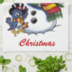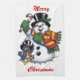 Cute Snowman And Bluebird Tea Towel
