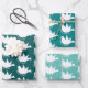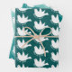 Peace on Earth white dove teal blue Christmas Wrapping Paper Sheets. Each sheet features a white dove and the text “Peace on Earth” in curved style in a different teal blue shade.