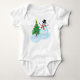 Cute snowman with snowflakes and decorated Christmas tree is so festive for the holidays.